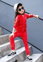 เด็กโต-ชุด2 ชิ้นเสื้อแขนยาวจั๊มพ์สีแดง ซิปหน้า(หัวซิปรูปดาว) มีกระเป๋าข้าง+กางเกงขายาวจั๊มพ์สีแดง แต่งเถบข้าง เอวยางยืด งานสวยเท่ห์ค่ะ ไซส์ 140/150/160