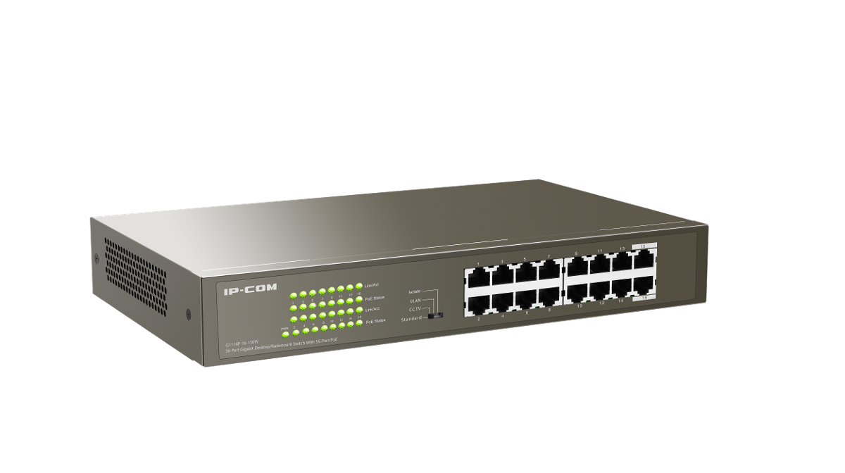 SWITCH (สวิตซ์) IP-COM G1116P-16-150W 16-Port Gigabit Desktop/Rackmount Switch With 16-Port PoE, Power Budget 135W