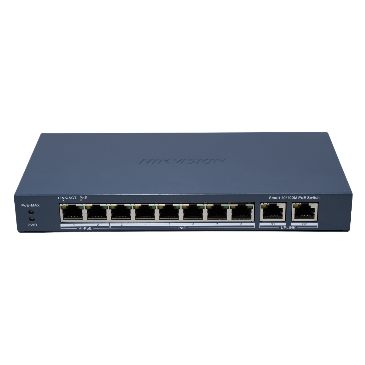 SWITCH (สวิตซ์) HIKVISION DS-3E1310HP-EI(B) 8 Port Fast Ethernet Smart POE Switch, 8 x 10/100M PoE Ports, 2 x Gigabit Uplink Ports, Total PoE Power Budget 110W (รับประกัน 3 ปี)